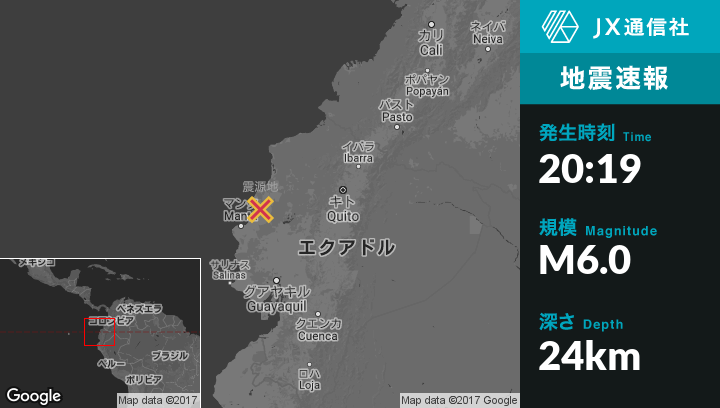| 震源地 | エクアドルのBahia de Caraquezから北東19kmの地点 |