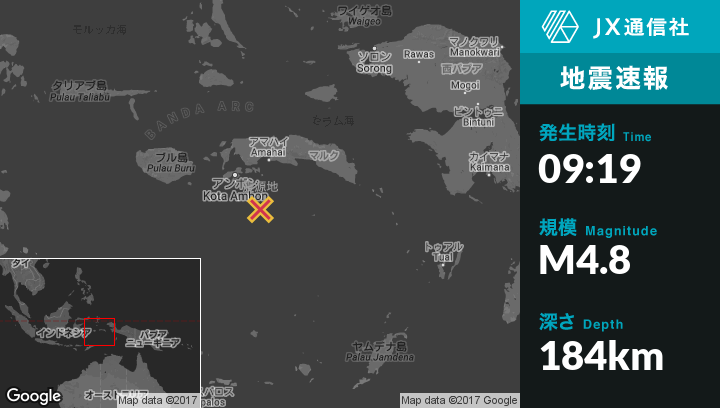 | 震源地 | インドネシアのSaparuaから南81kmの地点 |