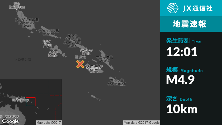 | 震源地 | ソロモン諸島のHoniaraから西北西87kmの地点 |