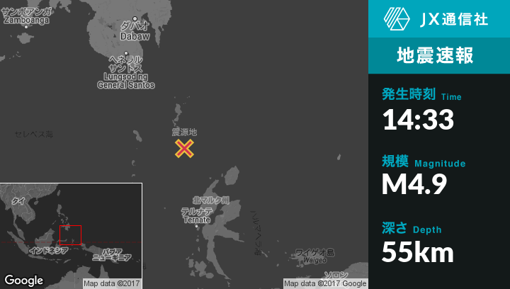 | 震源地 | インドネシアのTobeloから北北西207kmの地点 |