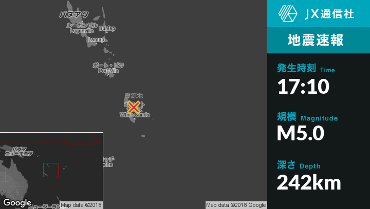 | 震源地 | バヌアツのIsangelから北北東70kmの地点 |