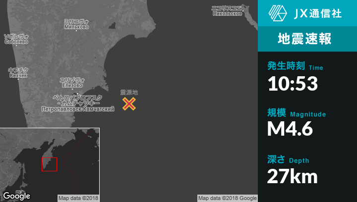 | 震源地 | ロシアのPetropavlovsk-Kamchatskiyから東156kmの地点 |