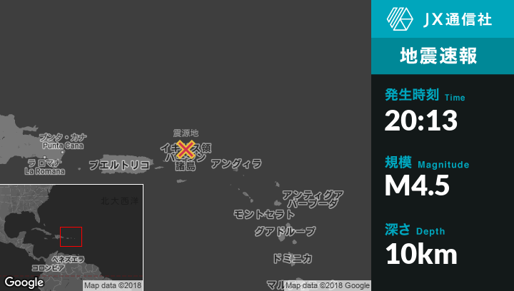 | 震源地 | イギリス領バージン諸島のRoad Townから北38kmの地点 |