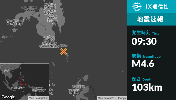 | 震源地 | フィリピンのSaranganiから東南東129kmの地点 |