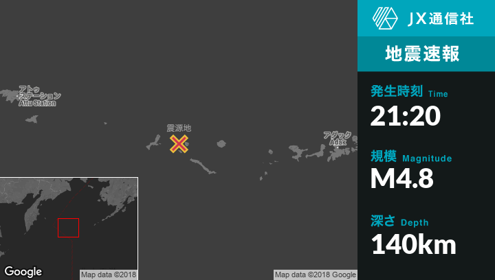 | 震源地 | アラスカのLittle Sitkin Islandから西北西18kmの地点 |