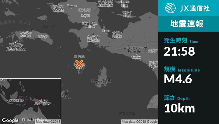 | 震源地 | インドネシアのTualから北66kmの地点 |