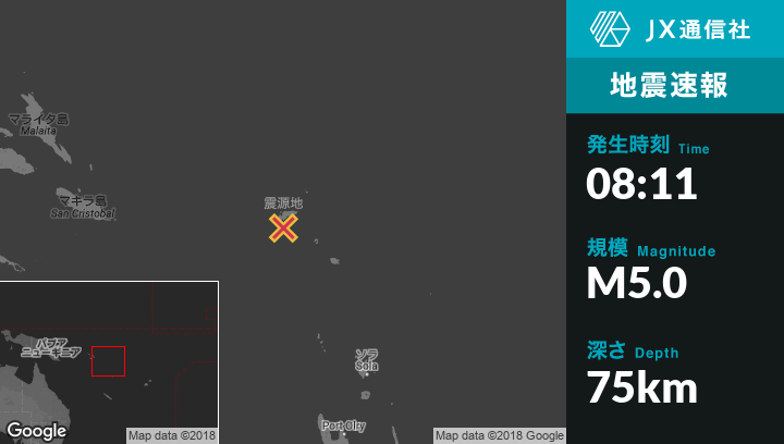 | 震源地 | ソロモン諸島のLataから南17kmの地点 |