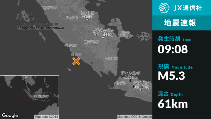 | 震源地 | インドネシアのPagaralamから南西88kmの地点 |