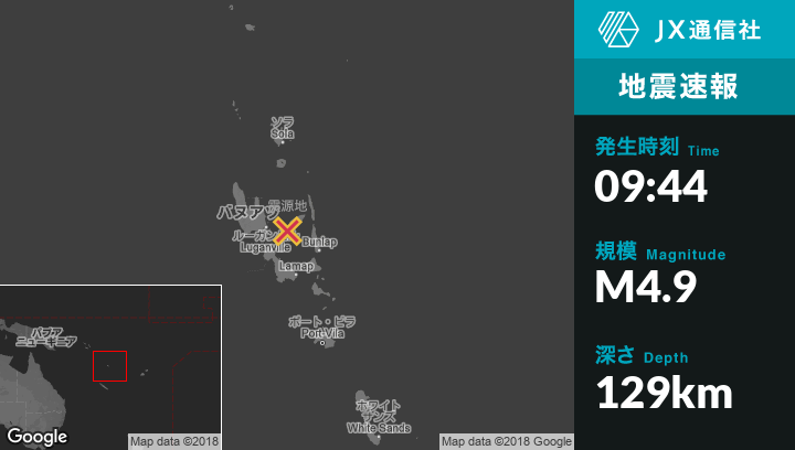 | 震源地 | バヌアツのLuganvilleから東49kmの地点 |