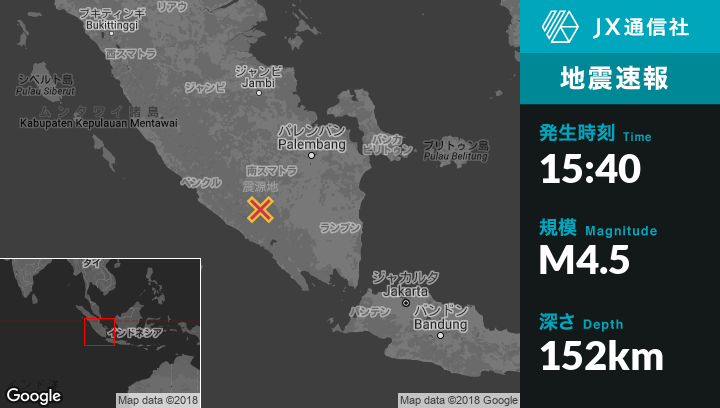 3月22日 15:40頃、インドネシアのTanjungagungから南西21kmの地点でM4.5の地震がありました。