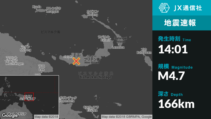 | 震源地 | パプアニューギニアのKandrianから北50kmの地点 |
