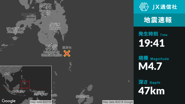 | 震源地 | フィリピンのCaburanから東南東109kmの地点 |