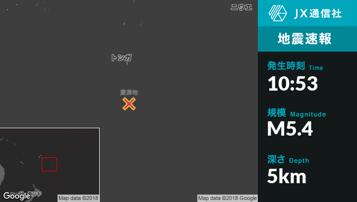 | 震源地 | トンガの`Ohonuaから南178kmの地点 |