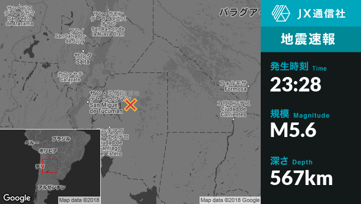 | 震源地 | アルゼンチンのEl Hoyoから北北西26kmの地点 |