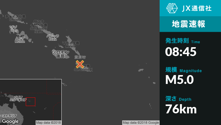 | 震源地 | ソロモン諸島のKirakiraから北西46kmの地点 |