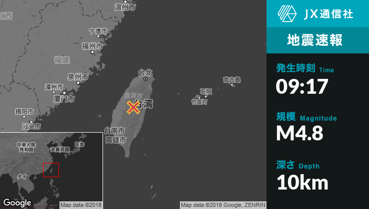 3月29日 09:17頃、台湾のBuliから東北東10kmの地点でM4.8の地震がありました。