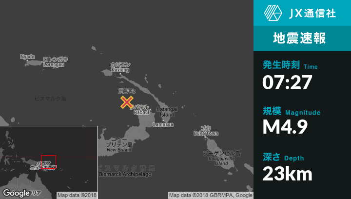 | 震源地 | パプアニューギニアのRabaulから西北西128kmの地点 |