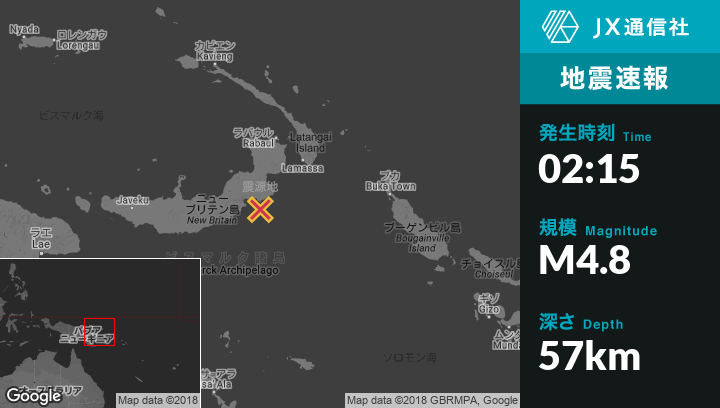 | 震源地 | パプアニューギニアのKokopoから南南西151kmの地点 |