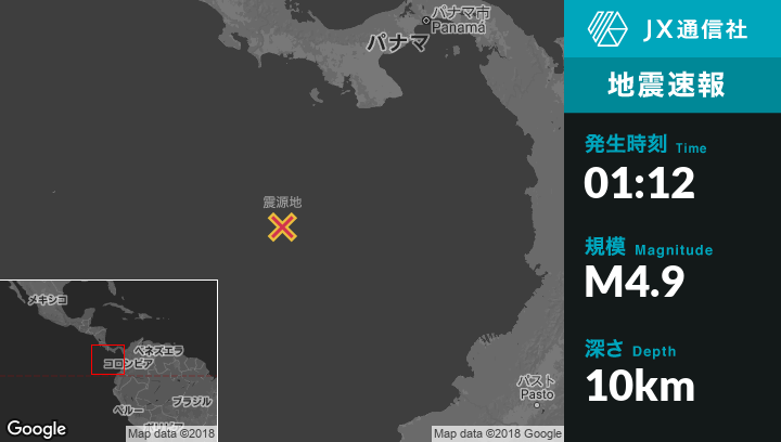 | 震源地 | パナマのPunta de Buricaから南345kmの地点 |