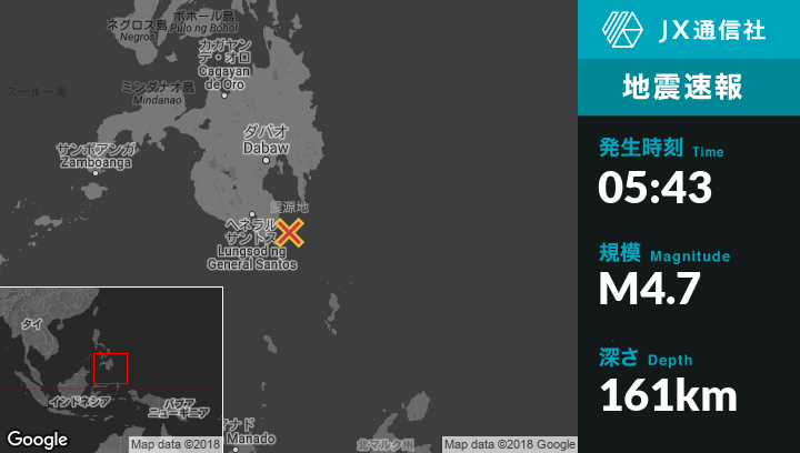 | 震源地 | フィリピンのMangiliから東南東27kmの地点 |