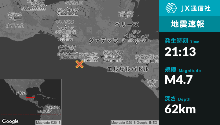 | 震源地 | グアテマラのChampericoから西南西21kmの地点 |