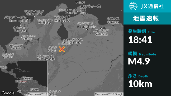 | 震源地 | ベネズエラのSanta Cruzから南南西6kmの地点 |