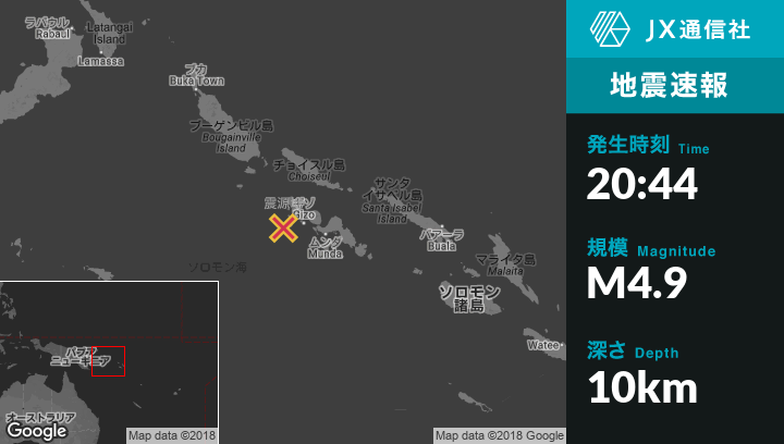 | 震源地 | ソロモン諸島のGizoから西46kmの地点 |