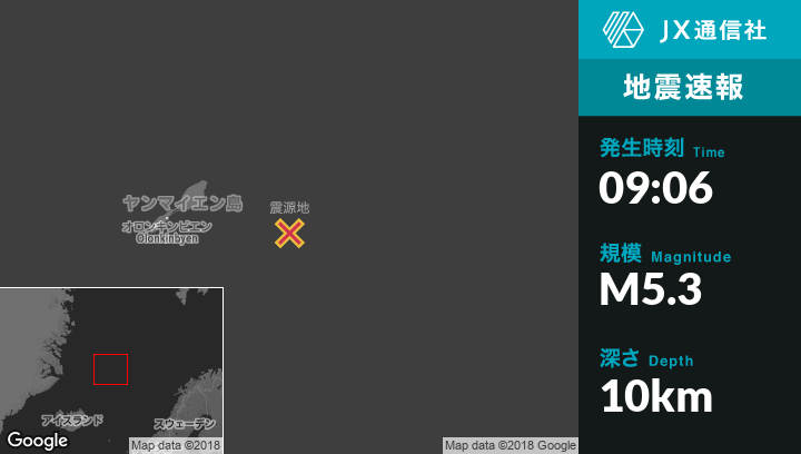 | 震源地 | スヴァールバルとヤン・マイエンのOlonkinbyenから東88kmの地点 |