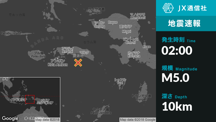 | 震源地 | インドネシアのAmahaiから南東103kmの地点 |