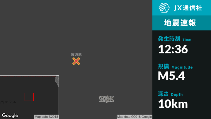 5月04日 12:36頃、チリのHanga Roaから北西395kmの地点でM5.4の地震がありました。