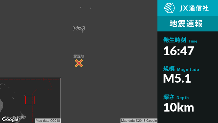 | 震源地 | トンガの`Ohonuaから南230kmの地点 |