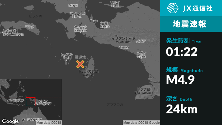 | 震源地 | インドネシアのDoboから西51kmの地点 |