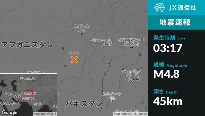| 震源地 | アフガニスタンのMarkaz-e Wuluswali-ye Yosuf Khelから南南西9kmの地点 |
