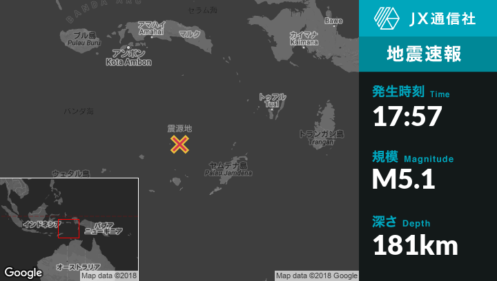 | 震源地 | インドネシアのSaumlakiから北西221kmの地点 |