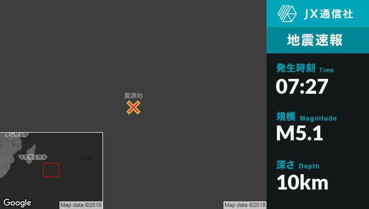 | 震源地 | レユニオン島のSaint-Philippeから南南東1035kmの地点 |