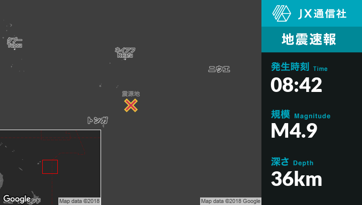 | 震源地 | トンガのPangaiから南東94kmの地点 |