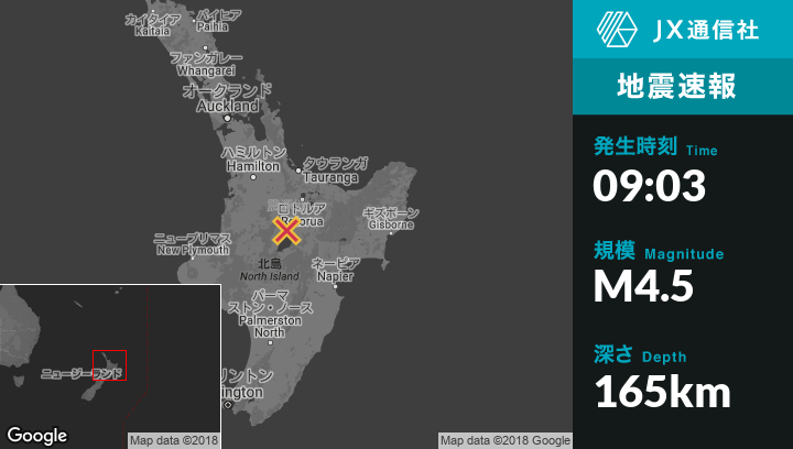 | 震源地 | ニュージーランドのTaupoから北西21kmの地点 |