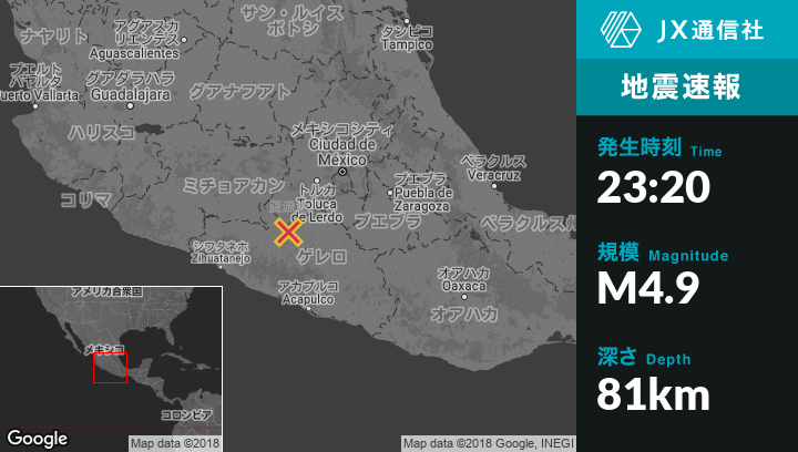 | 震源地 | メキシコのArceliaから北北東15kmの地点 |