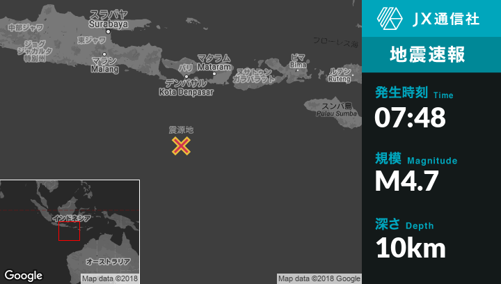 | 震源地 | インドネシアのKanginから南207kmの地点 |