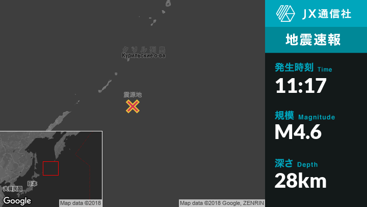 5月21日 11:17頃、ロシアのVostokから南東422kmの地点でM4.6の地震がありました。