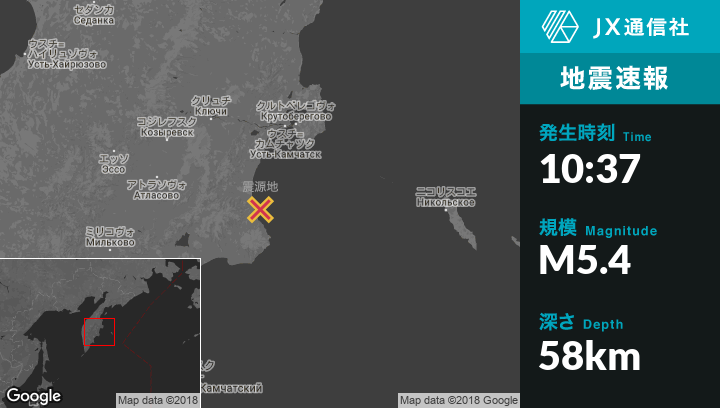 | 震源地 | ロシアのUst'-Kamchatsk Staryyから南南西112kmの地点 |