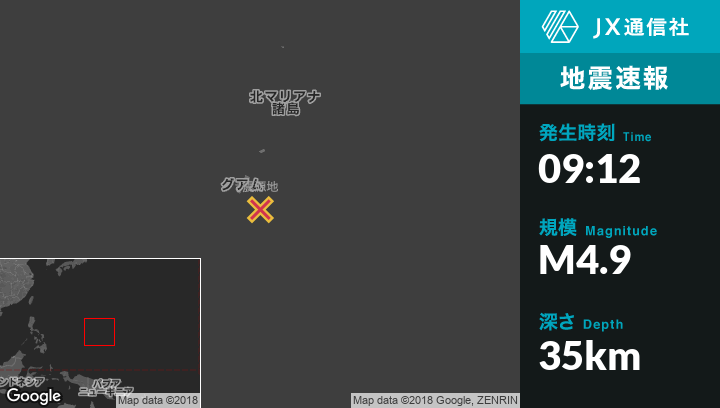| 震源地 | グアムのInarajan Villageから東南東54kmの地点 |