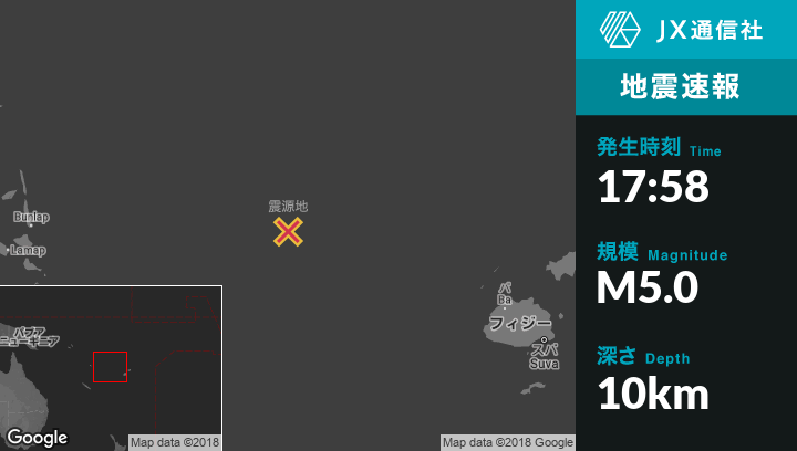 | 震源地 | フィジーのLautokaから西北西474kmの地点 |