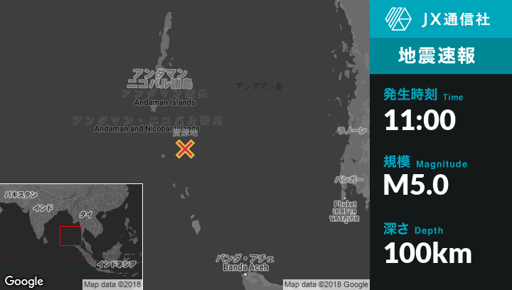 5月28日 11:00頃、インドのMoheanから北172kmの地点でM5.0の地震がありました。