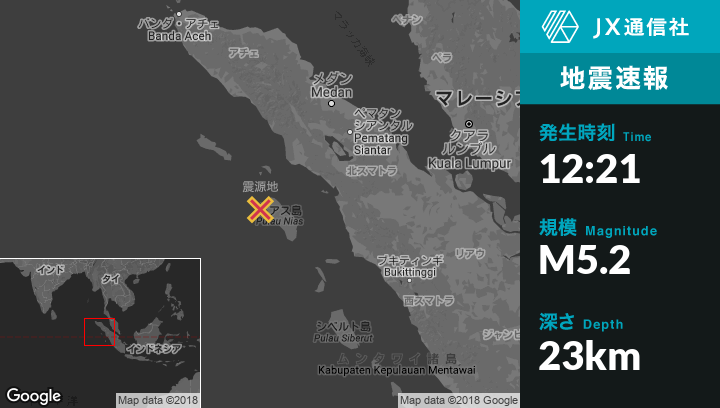 | 震源地 | インドネシアのSinabangから南南東146kmの地点 |