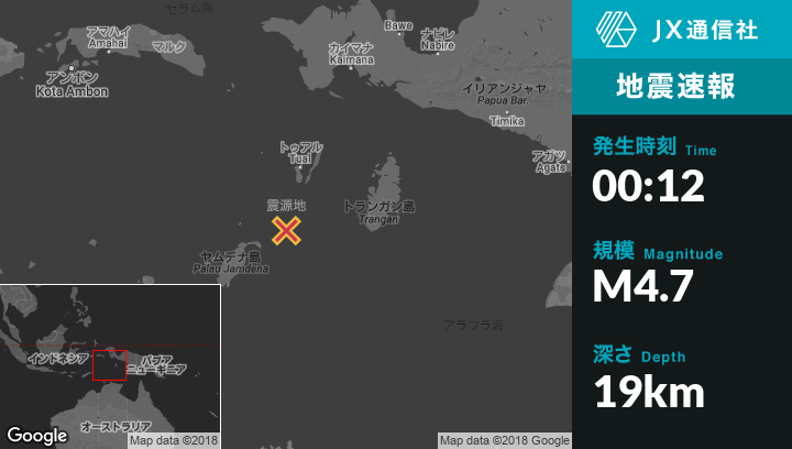 | 震源地 | インドネシアのTualから南南西127kmの地点 |