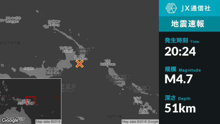| 震源地 | パプアニューギニアのTaronから南南西80kmの地点 |