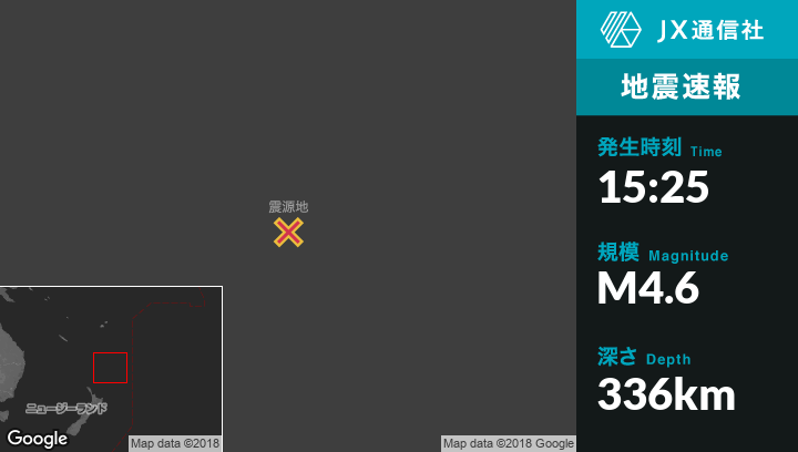 6月01日 15:25頃、ニュージーランドのL'Esperance Rockから北137kmの地点でM4.6の地震がありました。