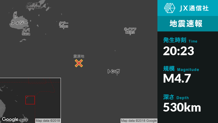| 震源地 | フィジーのNdoi Islandから東103kmの地点 |