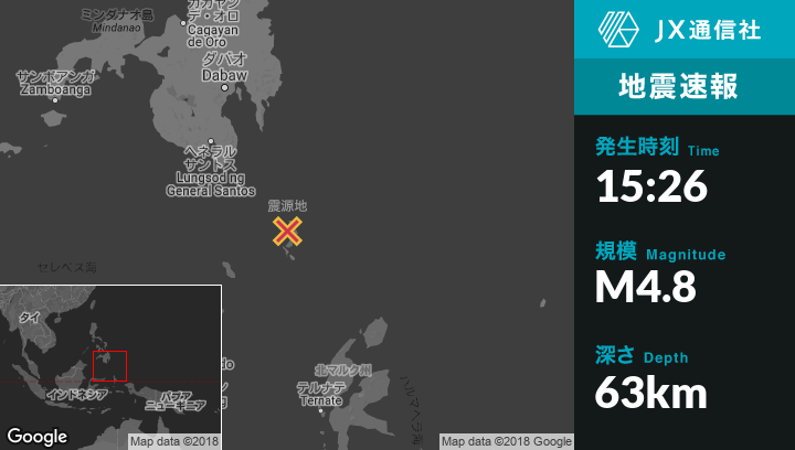 | 震源地 | フィリピンのSaranganiから南東172kmの地点 |